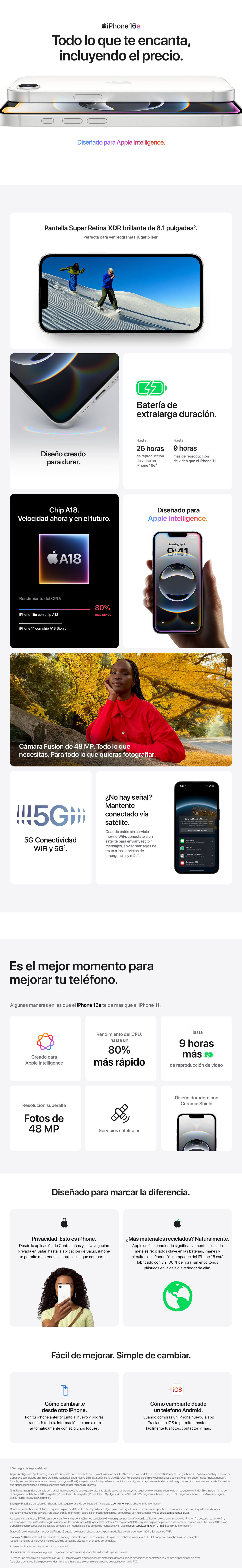 Este iPhone tiene calificación de compatibilidad con audífonos de M3 y T4. Visita Accesibilidad de audífonos para ver una lista completa de dispositivos y sus clasificaciones de compatibilidad.™ y derechos de autor © 2025 Apple Inc. Todos los derechos reservados.